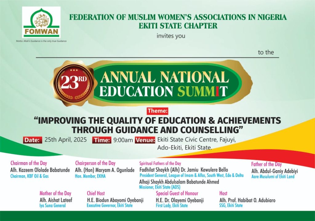 A group, Federation of Muslim Women’s Associations, Ekiti State Chapter is set to organize its 23rd Annual National Education Summit in the state.