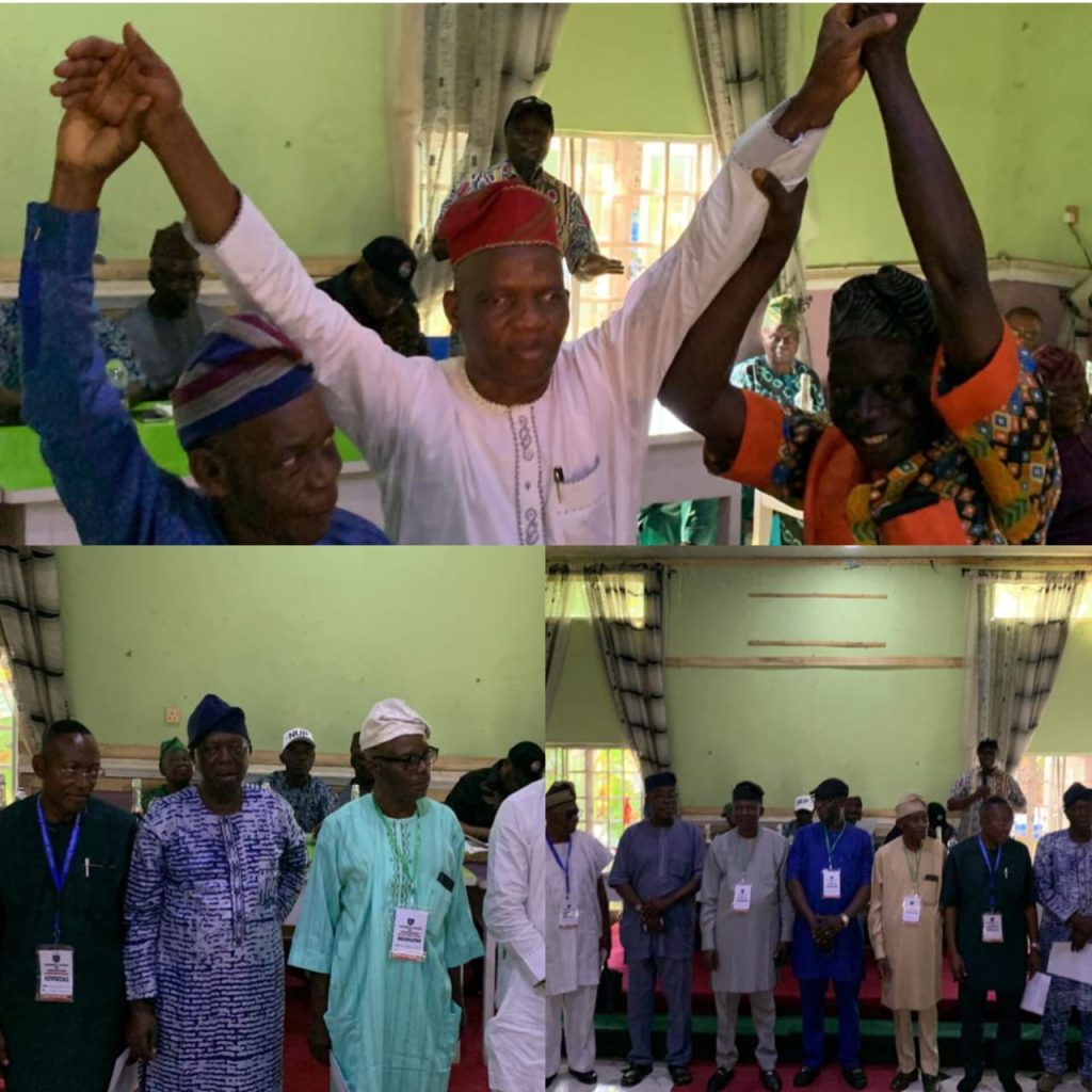 During the election held in Ado Ekiti, the caretaker Chairman, Adetola Popoola was unanimously elected unopposed after two other candidates voluntarily stepped down for him.