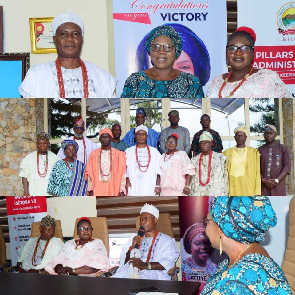 Addressing the contingents, comprising chiefs and other illustrious sons of the community, Mrs Afuye, in a statement signed by her Special Assistant on Media, Victor Ogunje, appealed to Oba Ateji to spread olive branch to his opponents to entrench peace in the community.