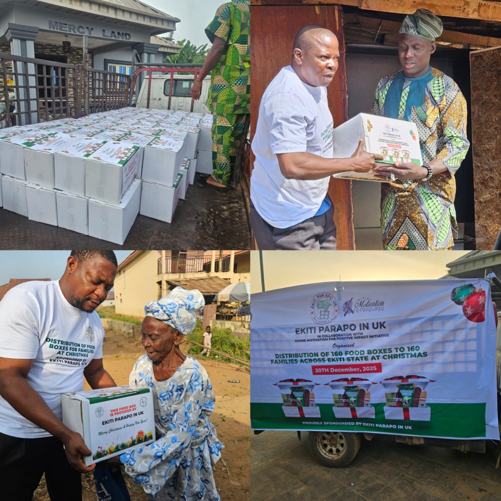 As Ekiti State and its residents dwell in the bliss of the festive season, some notable citizens of the state in the diaspora under the umbrella of Ekiti Parapo in UK have distributed food items worth several millions of naira to 165 families selected randomly across the 16 Local Government Areas of the State.
